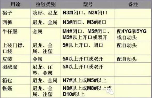 強(qiáng)力推薦--不同用途拉鏈型號選擇表